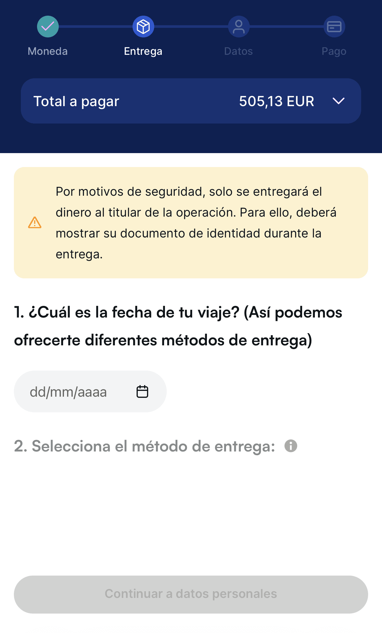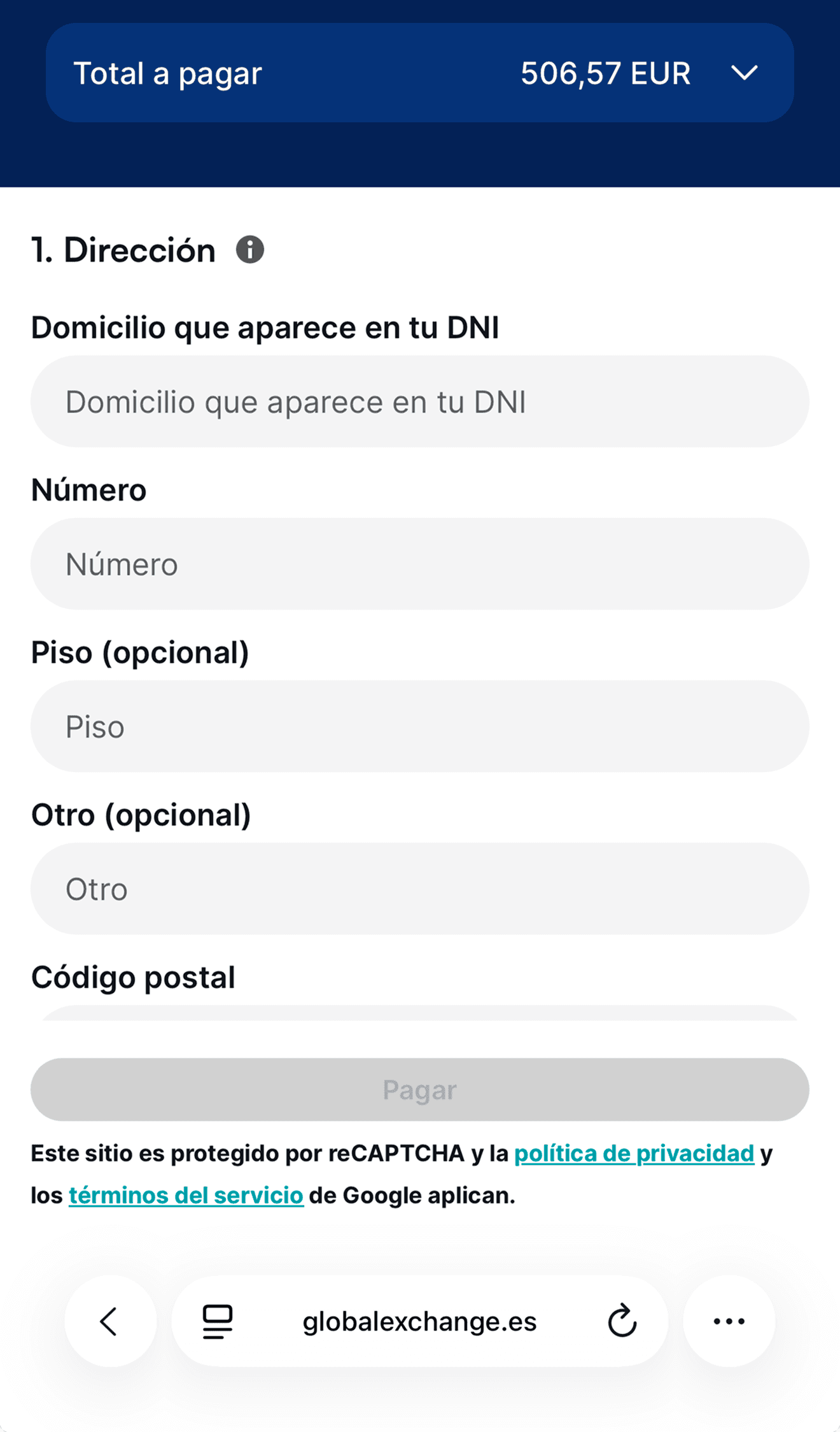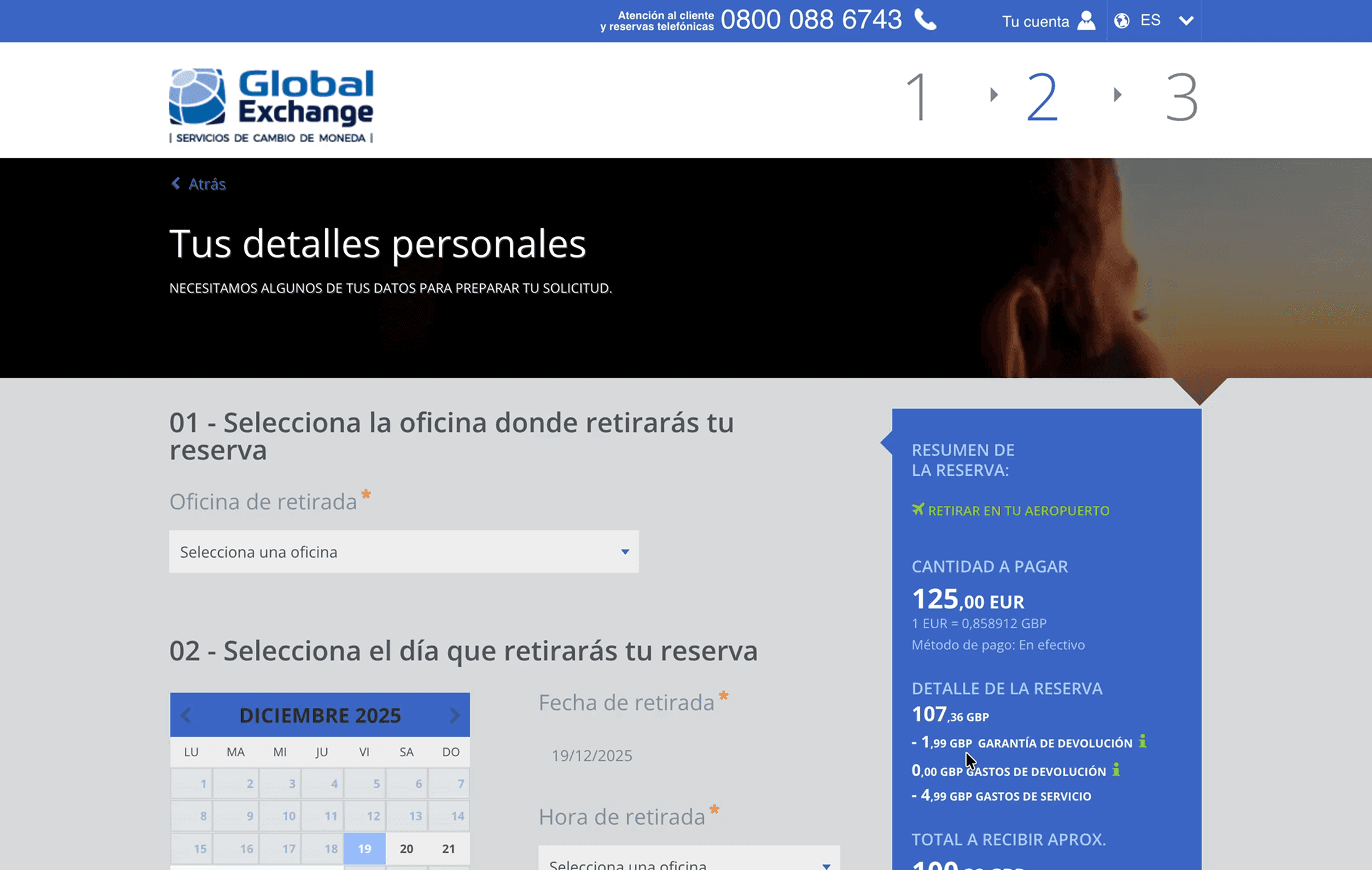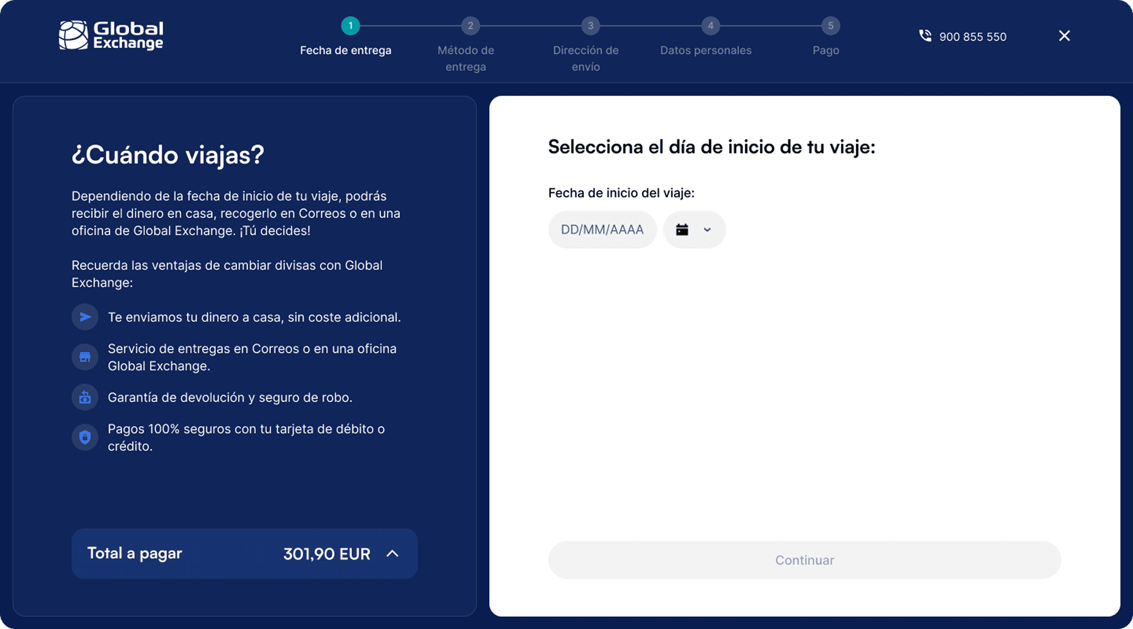 Rediseño del flujo de compra de moneda online para Global Exchange, simplificando el proceso y mejorando la claridad del servicio para los usuarios.